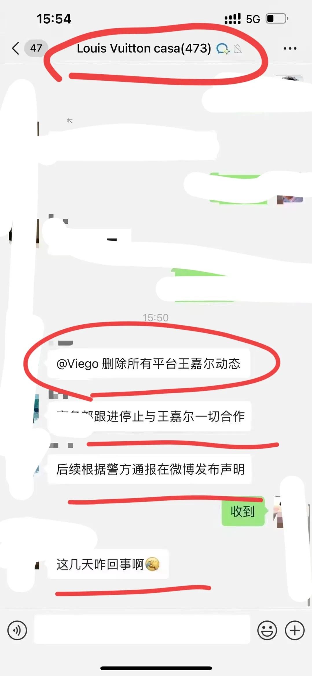 这不,在网上流传的一张截图里显示,在LV品牌员工的内部对话群里,有相关人员正在协调商务和宣传,删掉品牌与王嘉尔相关的一切动态。