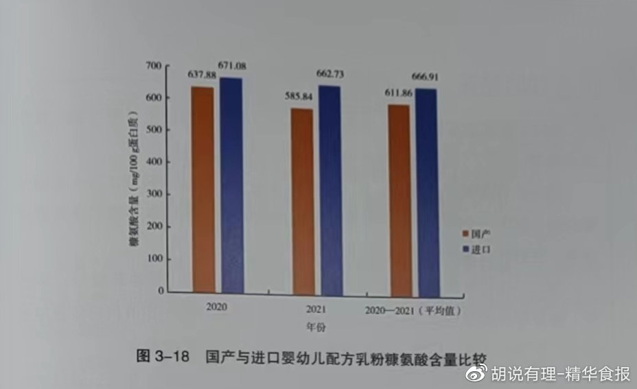 报告中首次纳入比较的婴幼儿奶粉项目,更是值得关注,国产婴幼儿配方乳粉中糠氨酸含量平均值从637.88mg/100g蛋白质下降至585.84mg/100g蛋白质,进口婴幼儿配方乳粉中糠氨酸含量也略有下降,平均值从671.08mg/100g蛋白质下降至662.73mg/100g蛋白质。