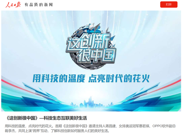 通过首档的《这创新很中国》节目中,除了主持人 蒋昌建,还有女排奥运冠军 惠若琪、OPPO软件副总裁 李杰。值得注意的是,人民日报在首档节目中就邀请到了OPPO软件副总裁 李杰 ,这个问题看似很有意思了。在十年前,走街串巷都能够听到的“充电五分钟、通话两小时”,到现在的OPPO不仅打造了世界顶级的智能手机产品,还在各大领域推出了创新型的IoT产品,可见在创新实力上的领先地位。
