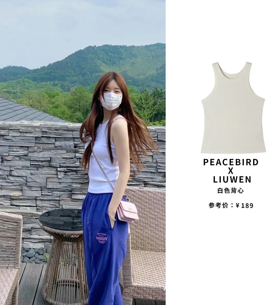 比如这件白色背心,就适合与其它彩色单品做搭配,但长度不太适合比赵露思身高矮一些的女生。