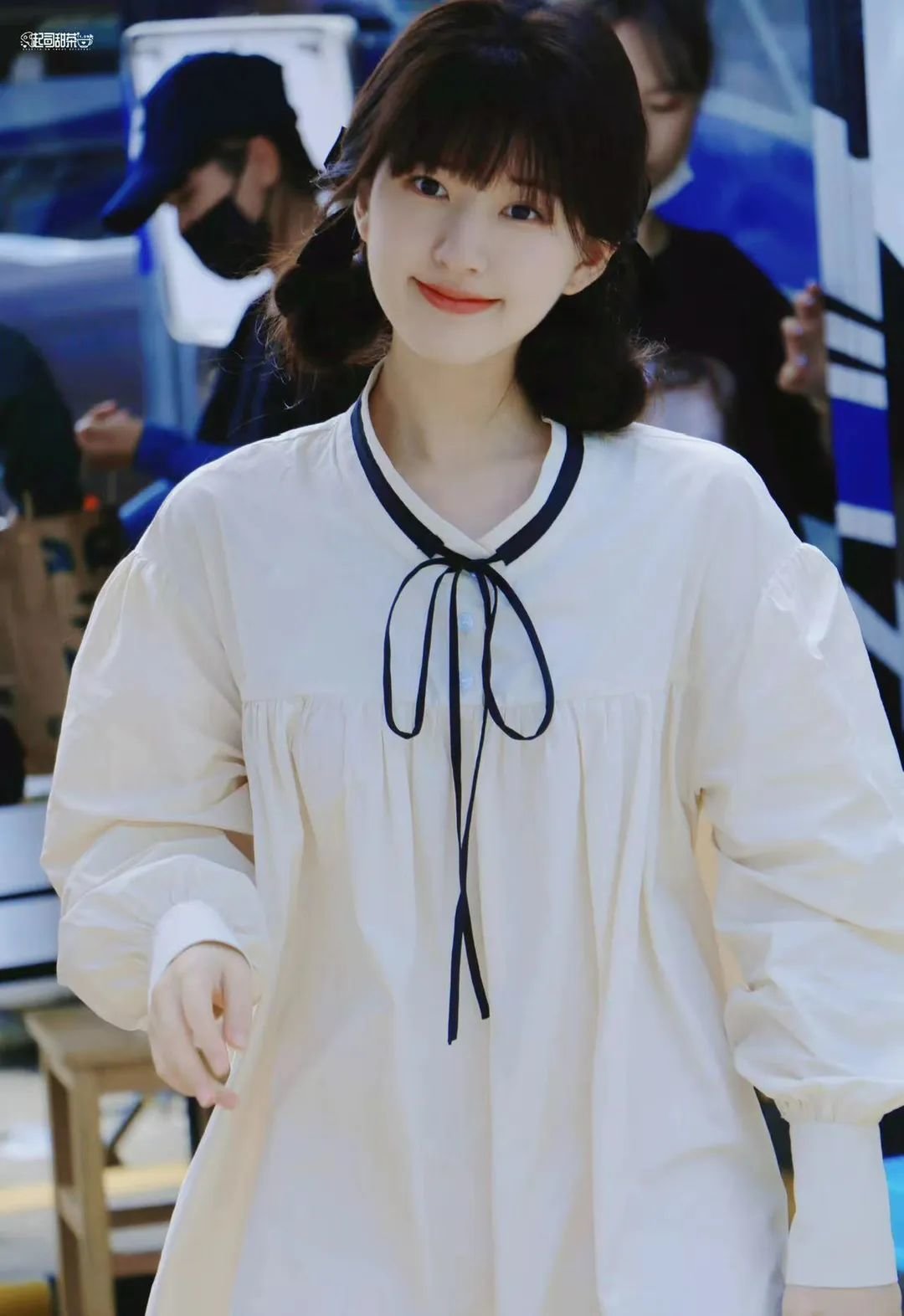 赵露思特别擅长在基础单品上做文章,她的人设主打治愈系甜妹,所以穿衣风格大多是温柔少女感,邻家有女的感觉。