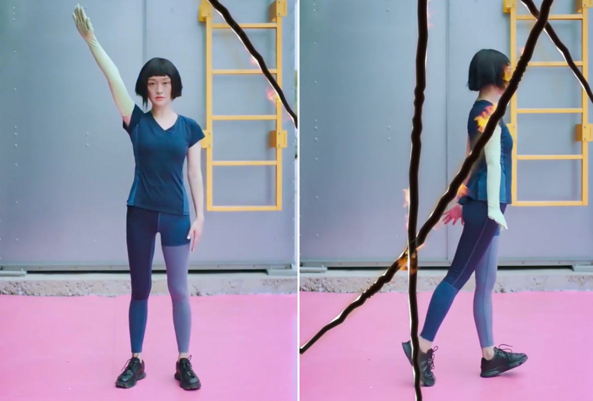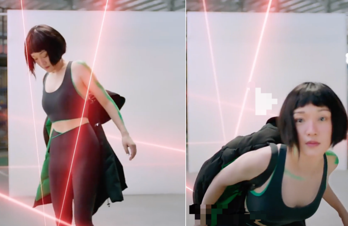 周迅还罕见地穿了一套运动内衣造型,手臂和肩部涂满了绿色的燃料,背着黑绿色系羽绒服,整个人飒爽干练,英气十足。只见周迅在片场又是下腰、弓背、跨大步等小心翼翼的动作,正在模拟机器人穿越紫外线的场景,成功后对着镜头微笑。