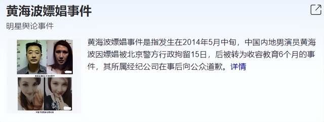 黄海波自从2014年5月嫖娼被拘留15天之后,从此再也没有出现在影视圈,他和吴启华一样,收心了就开始自动当起了“好男人”,回归家庭。