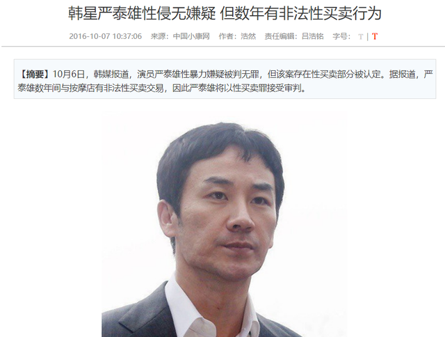 严泰雄嫖娼案件曾经是遭遇过一场“罗生门”,从性侵到嫖娼,罪名是降低了,但是形象已经大毁,2016年,严泰雄陷入性侵丑闻,一名女子报案称呼严泰雄在1月强奸了自己,后来严泰雄的性侵罪名被推翻,证实他涉及的不是性侵,而是“性买卖”,也就是嫖娼,所以他还是以性买卖的罪名遭到检方起诉,遭罚韩币100万元。