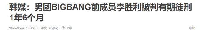 李胜利因为嫖娼以及其他犯罪行为被拘留后,2022年5月,法院做出宣判,他被判处了有期徒刑1年6个月,目前正在坐牢。
