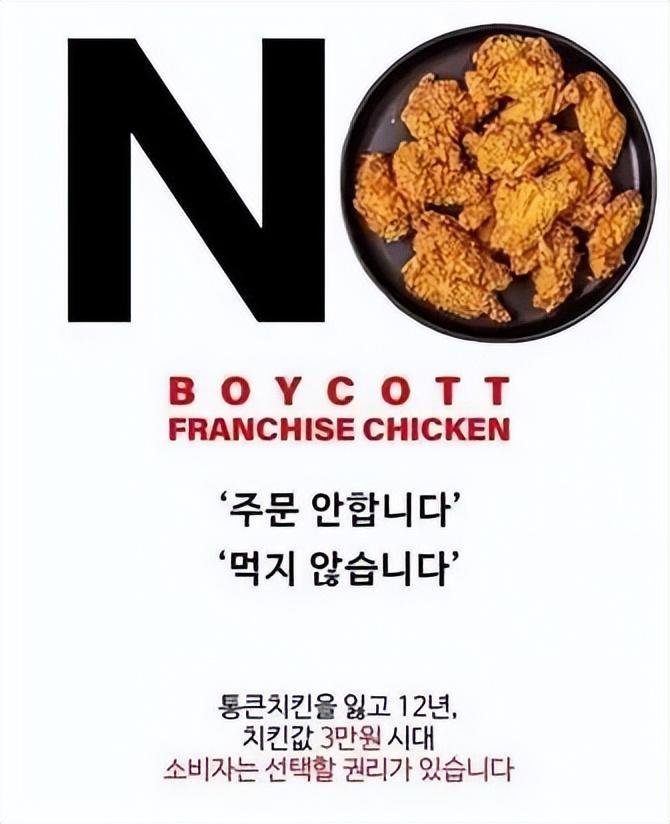 韩国民众纷纷表示“最近炸鸡太贵了,要吃不起了”、“虽说是高物价时代,但炸鸡价格这么贵像话吗?”,网络社区已经出现大面积抵制炸鸡的运动,不满之声日益高涨。