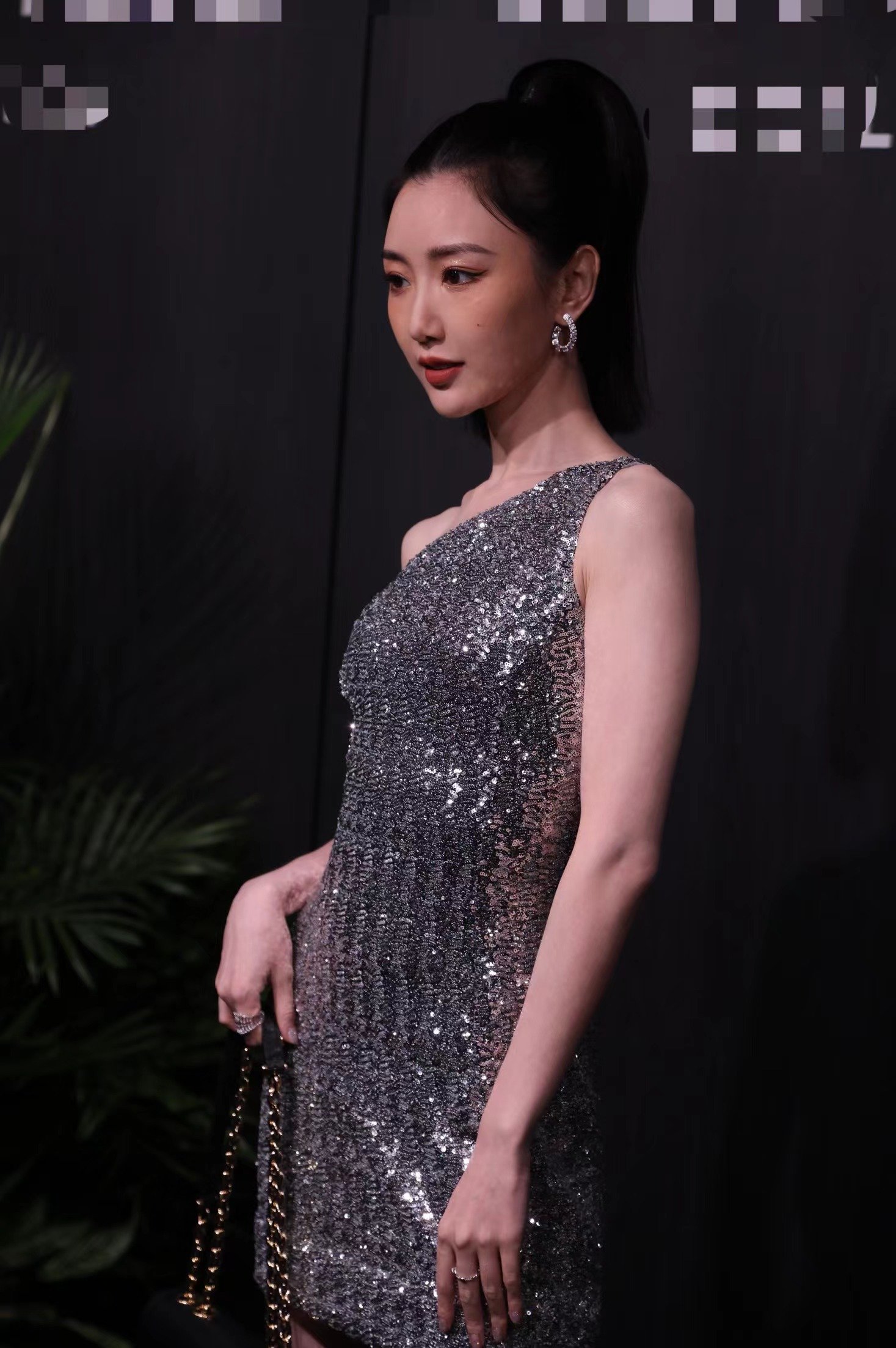 9月14日,上海,时装秀红毯。毛晓彤身着亮片短裙。