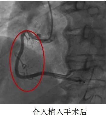 20分钟后患者导丝通过病变血管堵塞的血流恢复。
