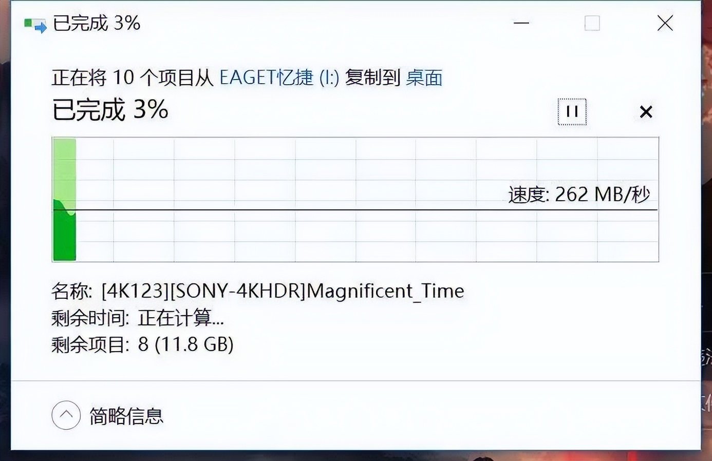首先是固态硬盘直连电脑的传输情况,与下面的硬盘接扩展坞做一下对比。