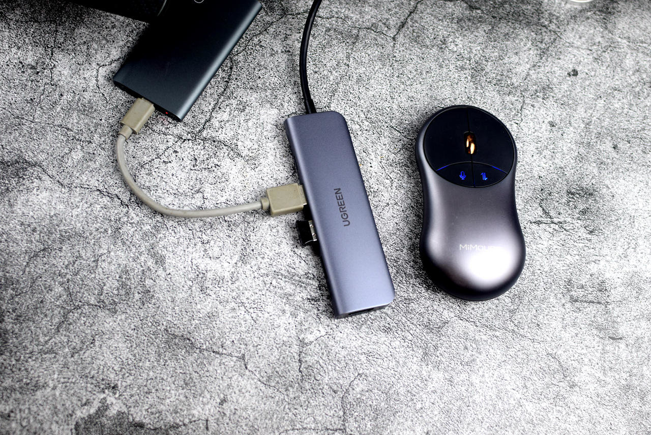 五个扩展接口为:USB-C口,支持PD 100W快充,在办公娱乐的同时轻松实现充电需求,3个USB 3.0接口,笔记本外接键鼠加U盘等都能满足,一个HDMI接口,可以实现大屏扩展需求。