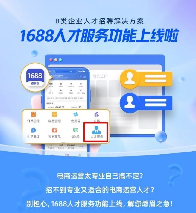 站长之家9月15日 消息:电商运营太专业自己搞不定?招不到专业又适合的电商运营人才?对于这类问题,1688宣布正式上线B类企业人才招聘解决方案——人才服务功能。