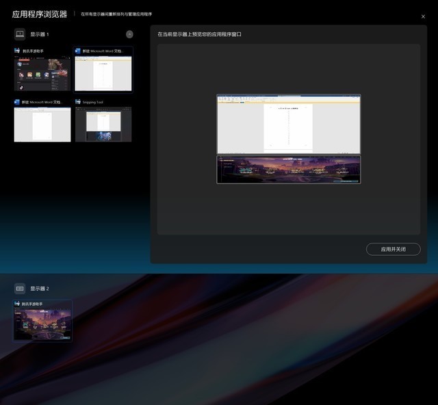 应用导航器可以设置各个应用在哪个屏幕上显示器、一键将处于主屏的窗口全部挪至副屏