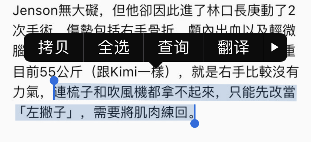 而林志颖的手,目前来说,恢复得并不算好。据林志颖本人透露,“右手比较没有力气,连梳子和吹风机都拿不起来,只能先当‘左撇子’”,后续仍然要好好练习手部肌肉,恢复往日的肌肉记忆。