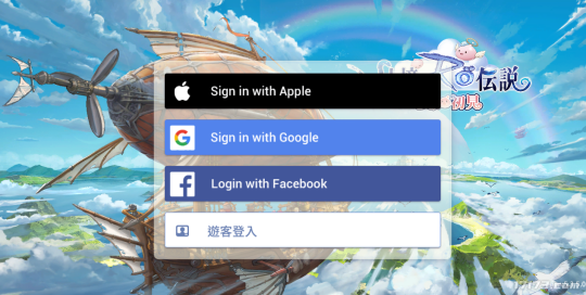 在进入游戏之后,会让我们选择登陆方式,游戏支持苹果ID、谷歌账号、脸书账号、游客方式进行游戏。