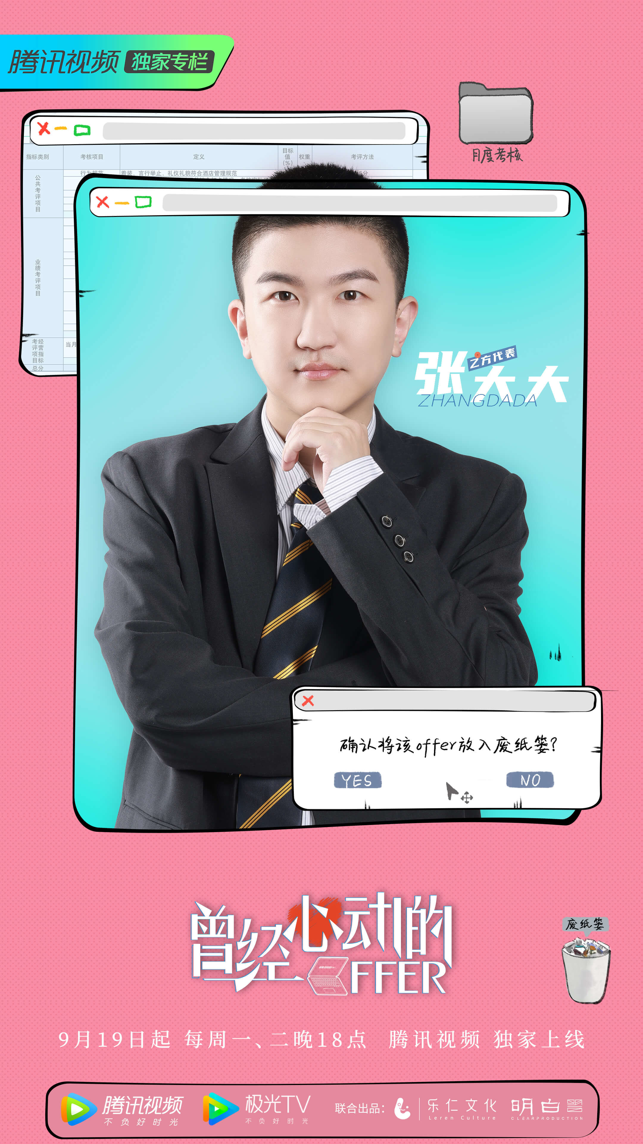 由乐仁文化、明白文化联合出品制作,腾讯视频独家播出的情境职场脱口秀《曾经心动的Offer》定档9月19日。该节目由任静担任制片人和总导演,知名主持人杨杨组局主持,以脱口秀派对的形式,邀请包括张大大、王勉、脱口秀演员小北和小佳、嘎嘎周英俊在内的多位话题嘉宾以及经历过裁员、跳槽、待业的当代打工人,带着他们“曾经心动”的OFFER,来分享“前任”职场的奇葩过往,回忆当初的心动故事。