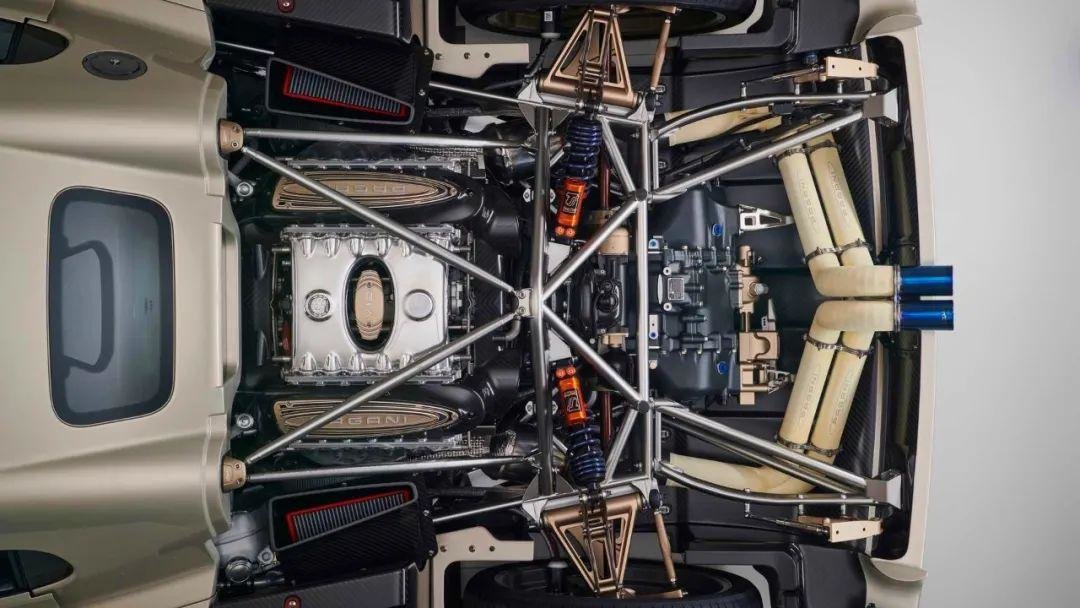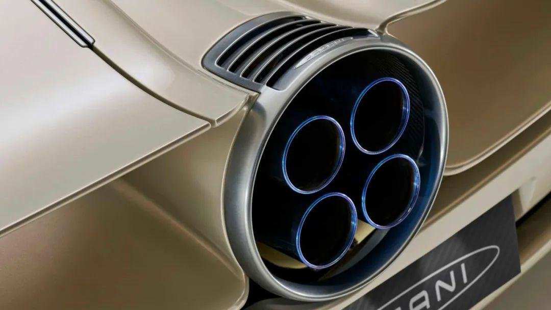 得益于新车采用中置发动机,一个大圆形排气集合了四个小排气,左右两侧各两个圆形尾灯,此外,新车还配备了双主动式扰流板的设计,这一功能也是从Huayra上继承下来,后包围整体设计起来也是较为复杂。