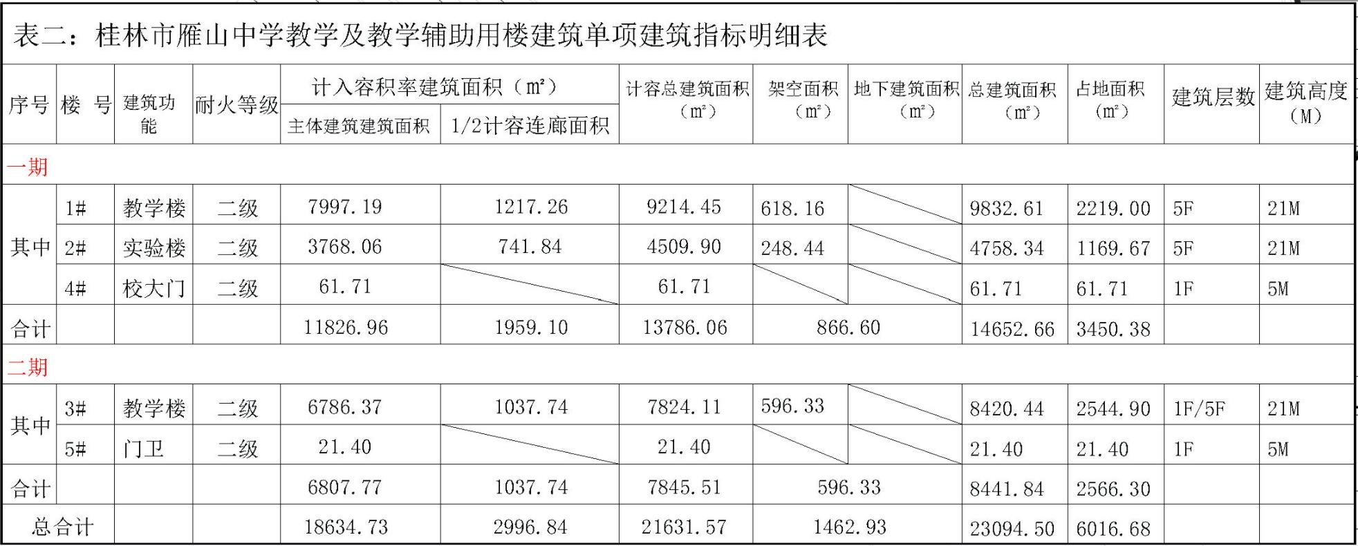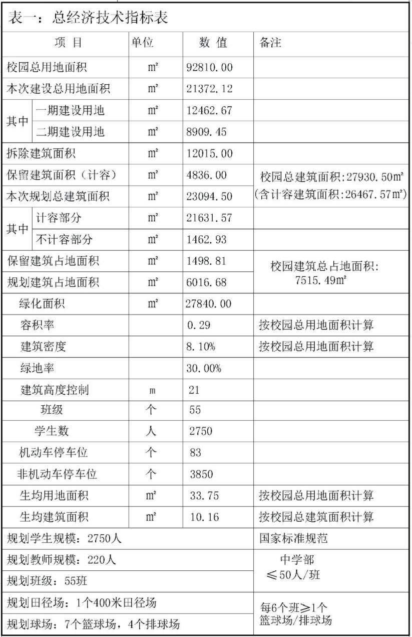 现拆除建筑面积共计12015平方米,保留3栋学生宿舍和食堂建筑面积为4836.00平方米;新建教学及教学辅助用楼及2座校门的建筑面积为23094.50平方米。