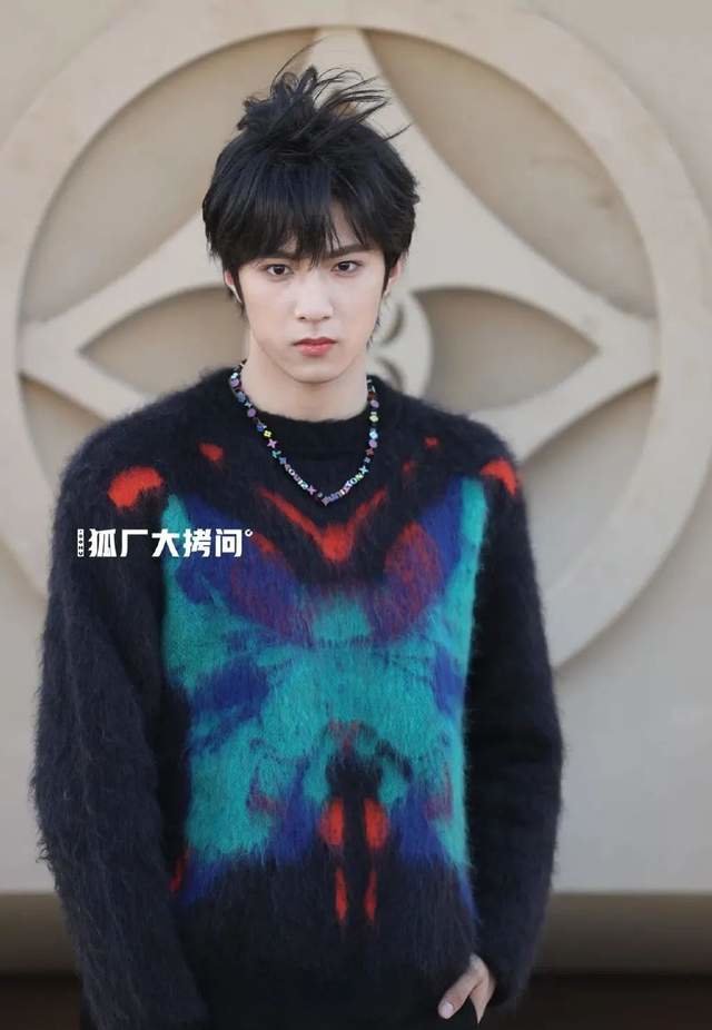 另一位爱豆刘耀文穿了一款蝴蝶图案的毛衫亮相,感觉十分保暖。也许年轻爱豆不够自信的缘故,在妆造上就更为偏爱浓一些妆容样式,看起来更为醒目。