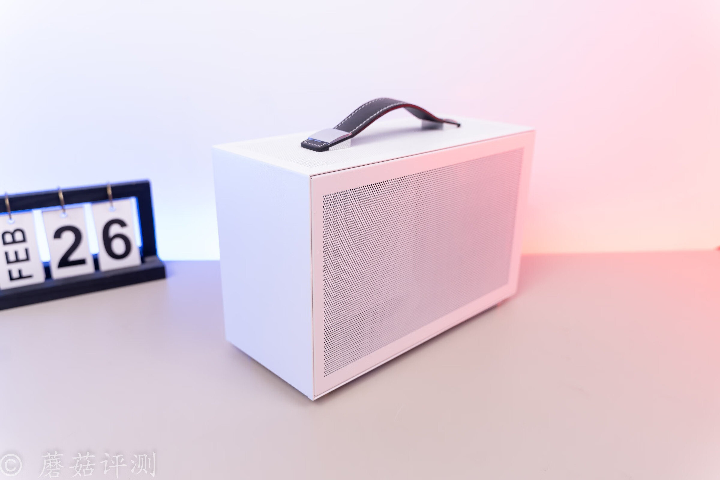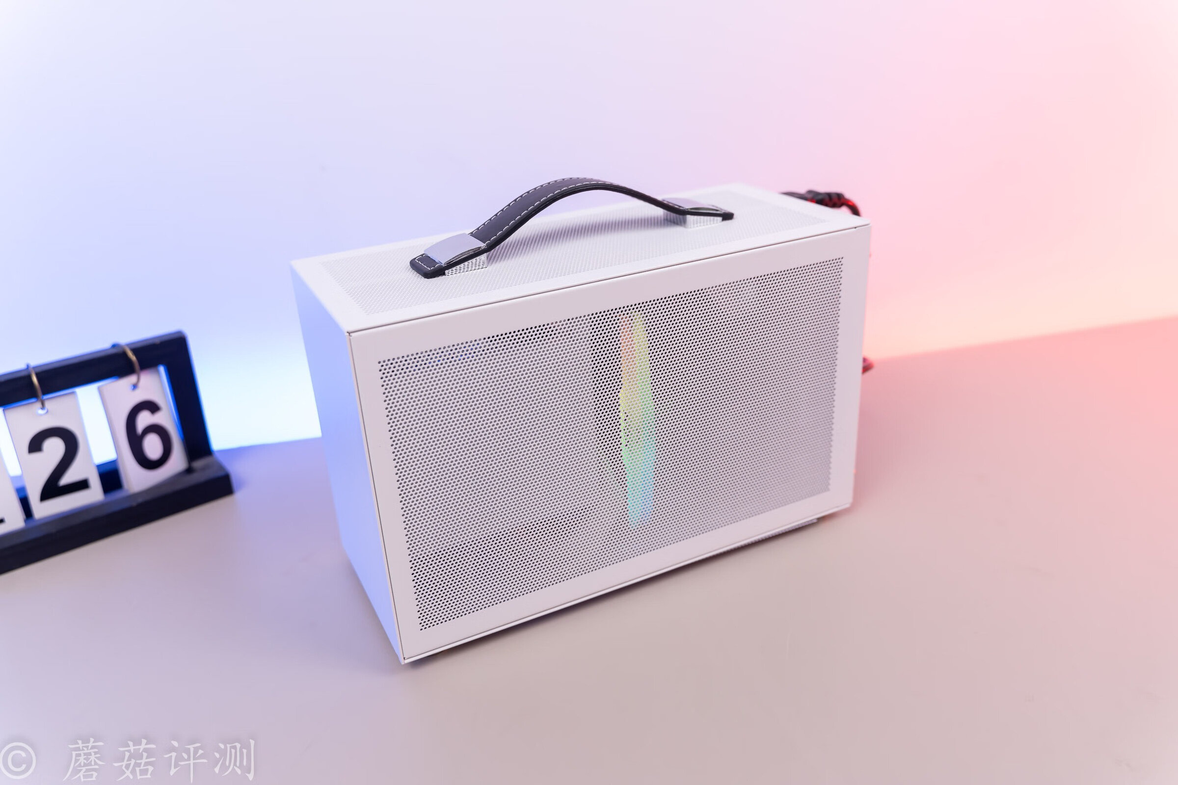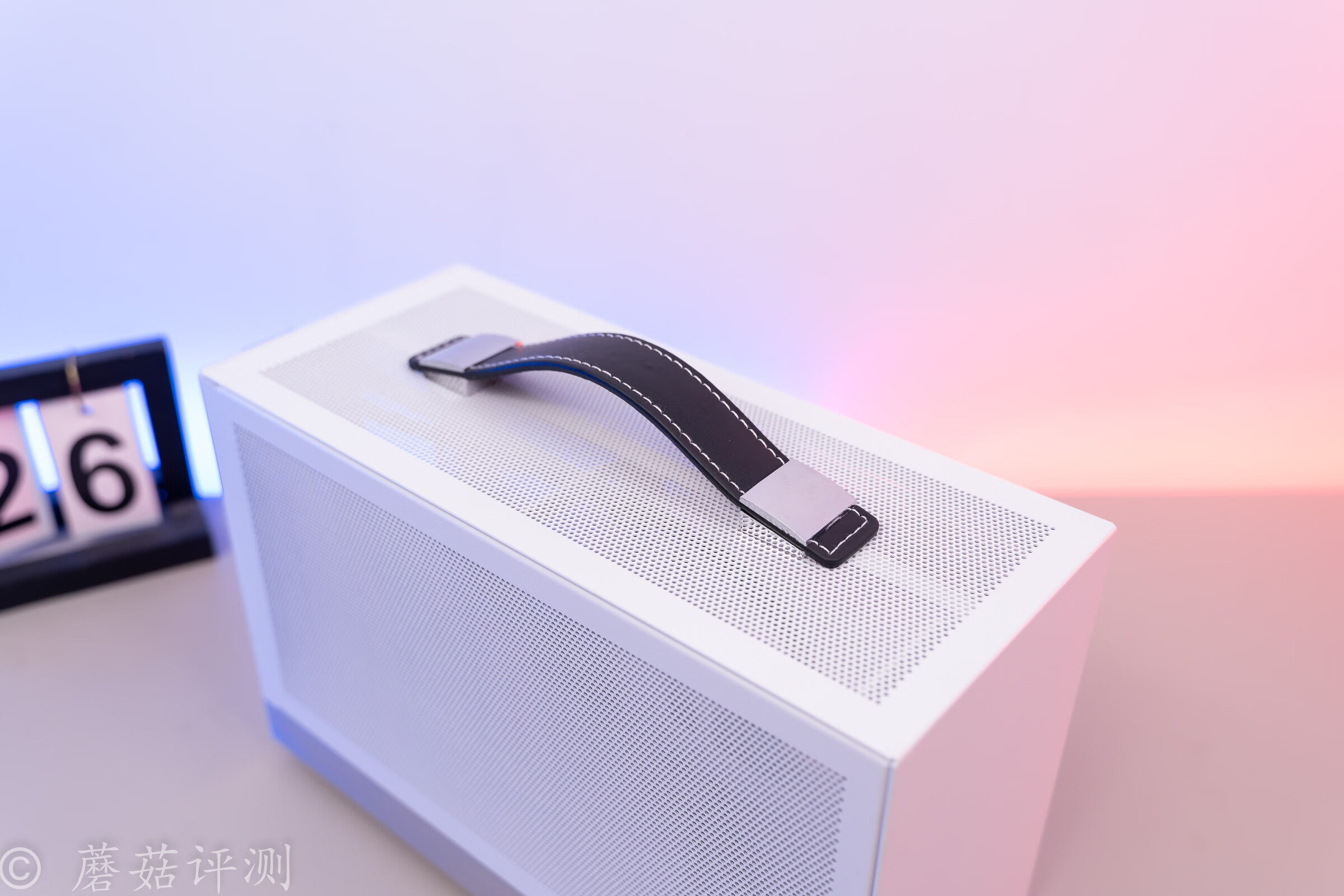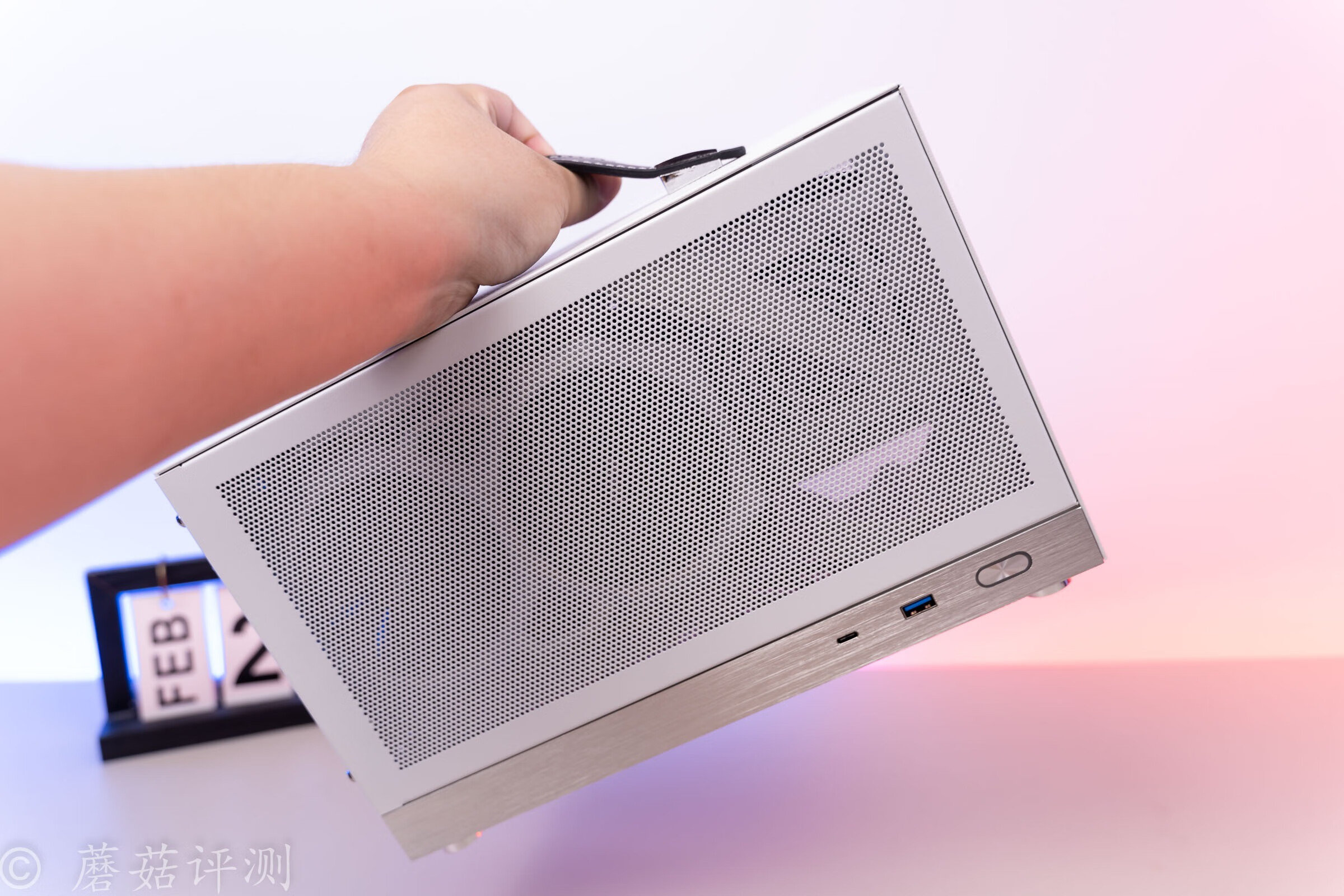 ▼真的是非常的便携,蘑菇单手就可以通过机箱顶部的把手拎起来,很轻松。