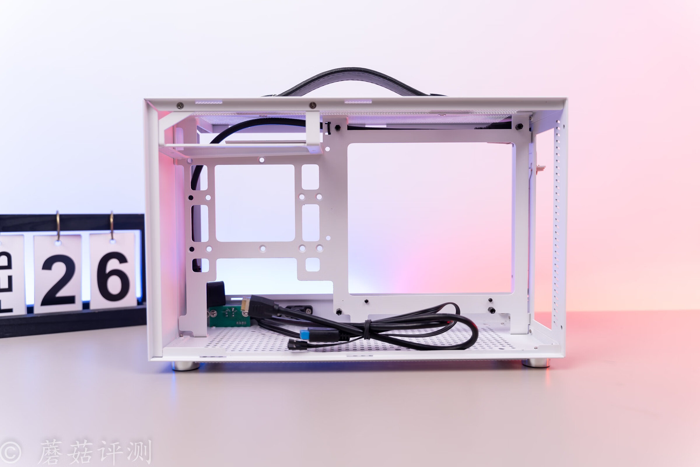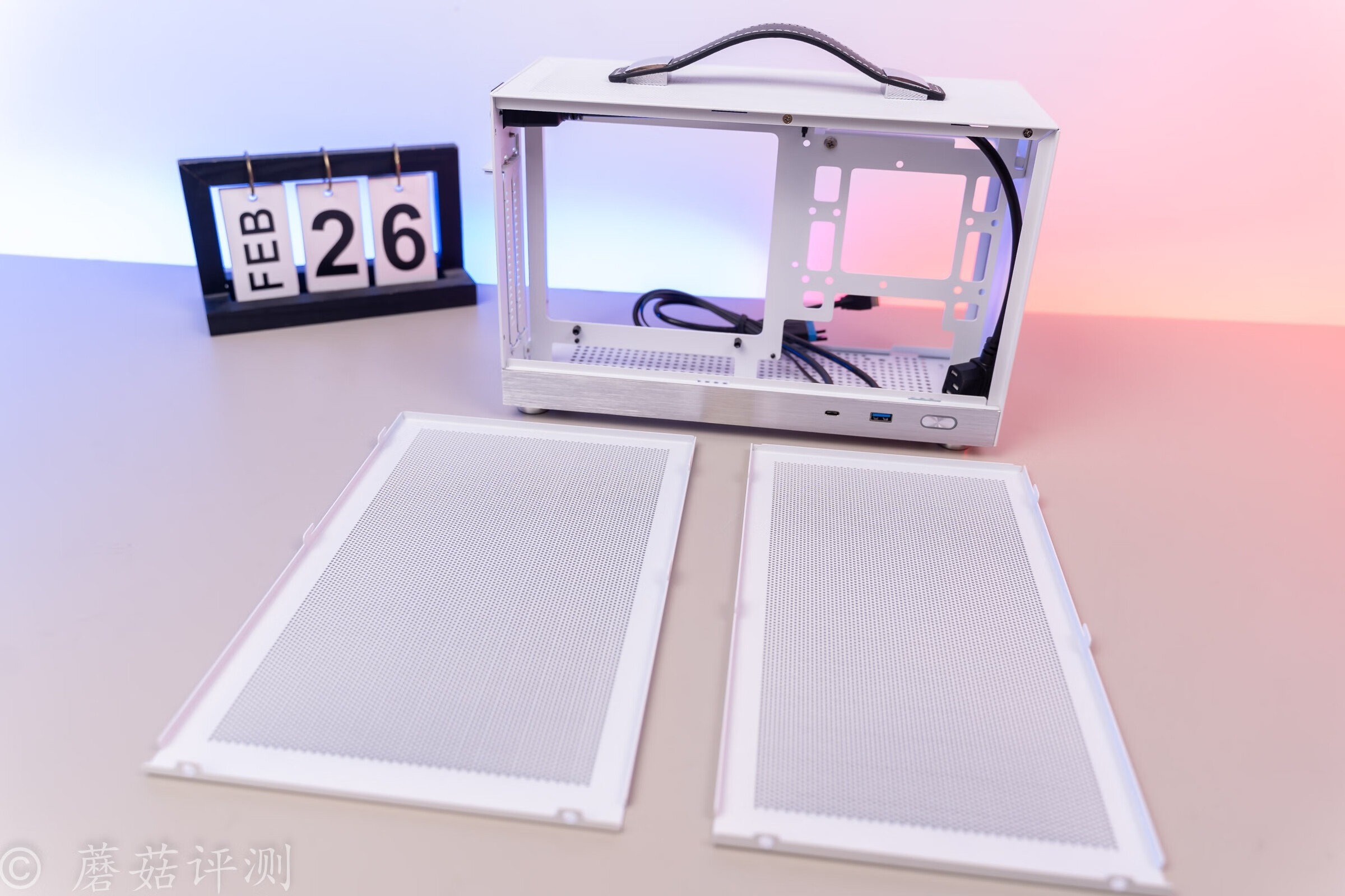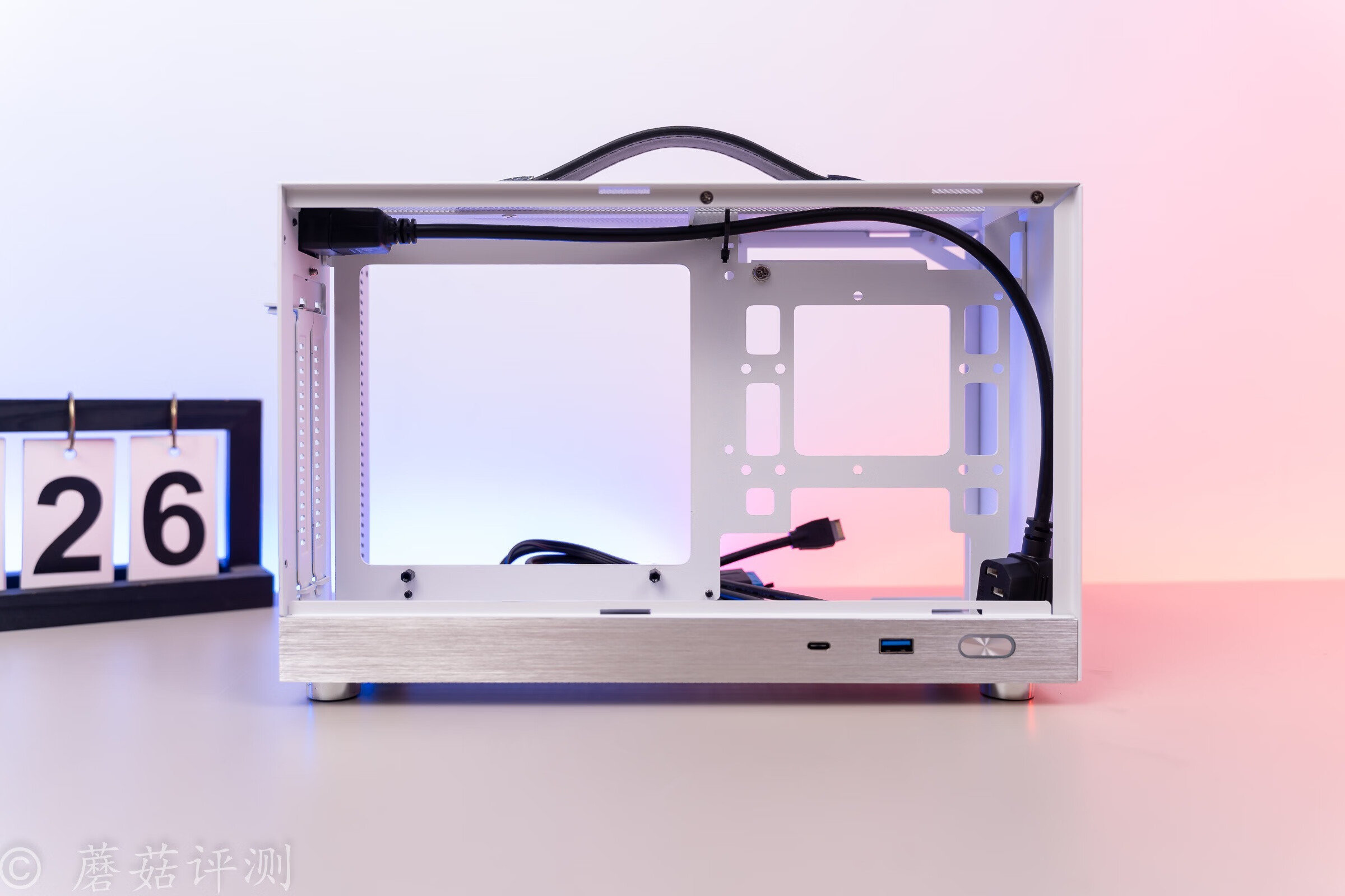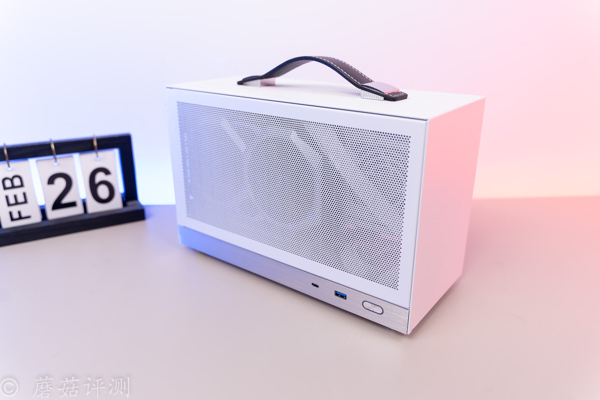▼真的是非常的便携,蘑菇单手就可以通过机箱顶部的把手拎起来,很轻松。