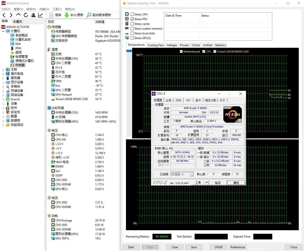 ▼日常待机情况,室温26℃左右,AMD的原装散热,处理器在44℃左右,表现还不错。