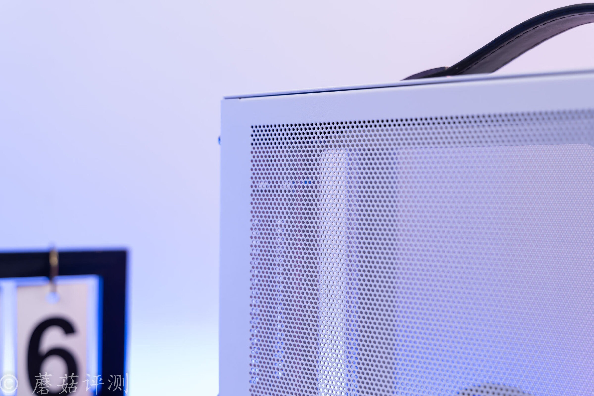▼机箱的侧板做工不错,金属冲孔网是圆孔,仔细看没有任何瑕疵。