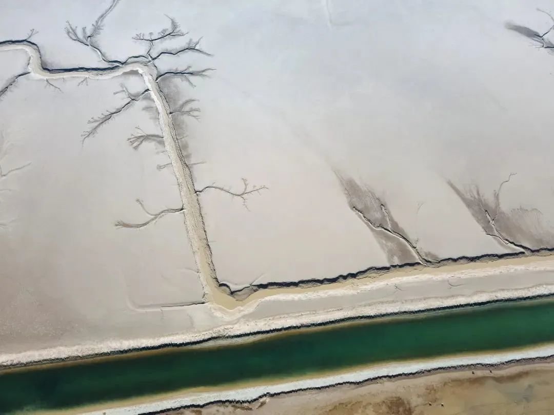 潮汐冲刷的潮沟,纵横交错,大地纹理竟如“参天大树”,乃是世界罕见的地貌。