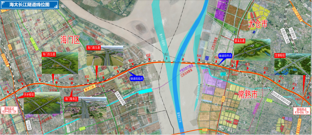 该过江通连接太仓市、常熟市和南通市海门区,全长约39公里,是世界最长的公路水下盾构隧道。