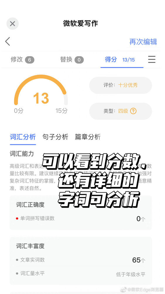 官方表示,Edge浏览器的“Aim Writing英文批改”功能现已正式上线!新功能采用微软亚洲研究院专业AI模型进行打分,模拟真实考试打分标准,还能给出精准修改意见。