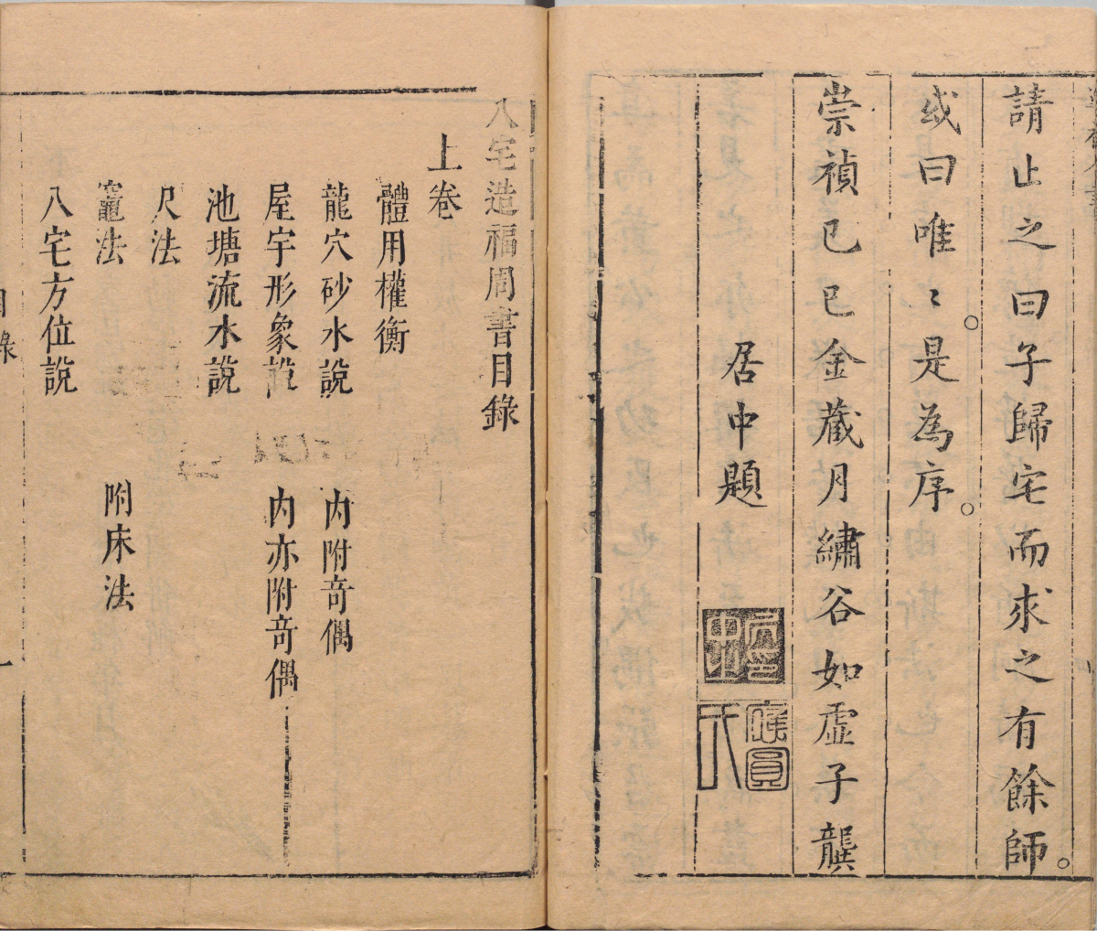 简介:《重订相宅造福全书》由明代刘孔敦编。其内汇编建筑风水相关书籍:《重订相宅造福全书》二卷(黄一凤撰)、《鲁班经》三卷(午荣编)、《秘诀仙机》,《玉匣记》各一卷、《阳宅大全》(王元鼎撰)十卷。此为明崇祯时期金阊严少萱刊本,内附相关插图。