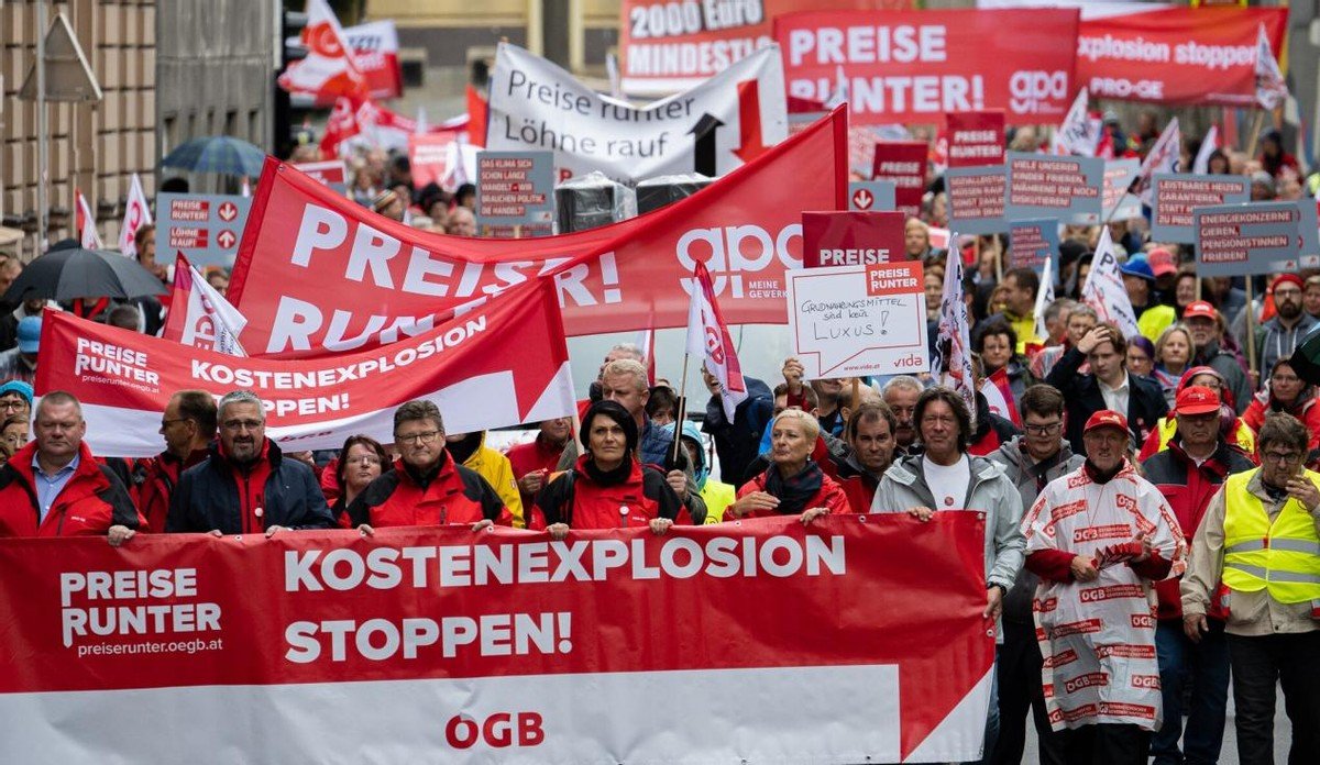 如果说之前捷克的抗议还有着政治色彩(要求政府放弃此前的亲西方反俄政策、并敦促现政府辞职),那么这次奥地利的抗议诉求,则完全是民生诉求。抗议现场,示威者高举着“我们要吃饭、要取暖、要生存!”“降低物价”“提升养老金10%”等标语,奥地利抗议者的诉求具体且清晰,一如抗议活动的名字“降价”。