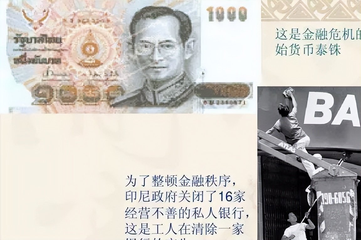 1997年7月2日,泰国宣布放弃固定汇率制度,实行浮动汇率制度,引来外币投机者。 泰国、新加坡、马来西亚、菲律宾相继受到冲击,汇价大幅下跌。 印尼受影响最严重,外汇投机者大量攻击东南亚小国外汇市场,导致东南亚集体崩盘。 日本和韩国也深受影响。 大量企业和银行倒闭,经济出现不同程度的衰退。 韩元的汇率甚至在半年时间里暴跌了80%以上。