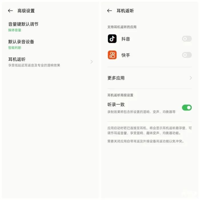 即应用启动时若已经连接到耳机,将会显示耳机返听悬浮窗,这样我们可以调节耳机的音量,享受混响、趣味变声和均衡器功能。玩游戏还是追剧看综艺,沉浸式影音体验挺有意思。