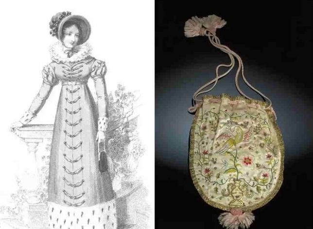 19世纪的手提袋子。当时袋子越小,显得自己家越富有(因为自己不用干活,都是老公赚钱哦)。/YouTube