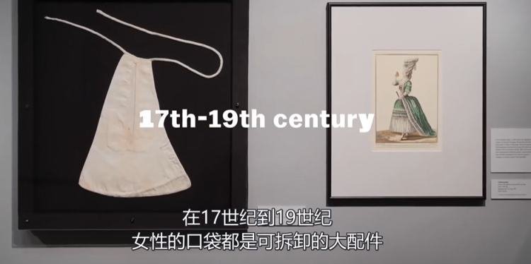 在17到19世纪,女性即便穿着裙子,也有一对可拆卸的口袋放置于腰间。当时的裙子,体积大、层数多,口袋可以被藏在衬裙中,就像贴身内衣。
