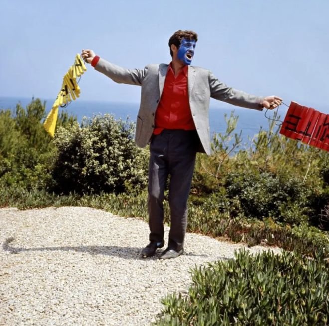 但这些所谓的自由真的是自由吗?好像不是,生活对于费迪南多并没有与别人不同,而唯一不同的点就在于斐迪南多选择了一种生活,一种牺牲了自己对于规则的适应性的生活,这也是六十年代新浪潮创作者们的共同的追求。这种追求有意义吗?