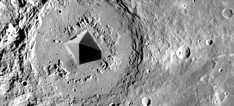 月球轨道飞行器 2 号航天器在宁静之海上方拍摄了一张奇异的图像,其中可以清楚地看到一些方尖碑。