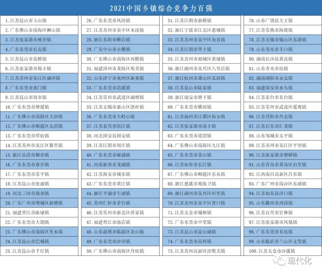 9月6日,竞争力智库、中国发展改革报社和北京中新城市规划设计研究院等机构在北京联合发布《2021乡镇综合竞争力报告》(以下简称《报告》)。《报告》同时揭晓了2021中国百强镇、2021中部百强镇、2021西部百强镇名单。其中,山东9地上榜2021中国百强镇,分别是济宁市兖州区新兖镇、淄博市临淄区金山镇、广饶县大王镇、寿光市羊口镇、寿光市侯镇、邹城市太平镇、青岛市黄岛区泊里镇、滕州市西岗镇、临沂市兰山区义堂镇。