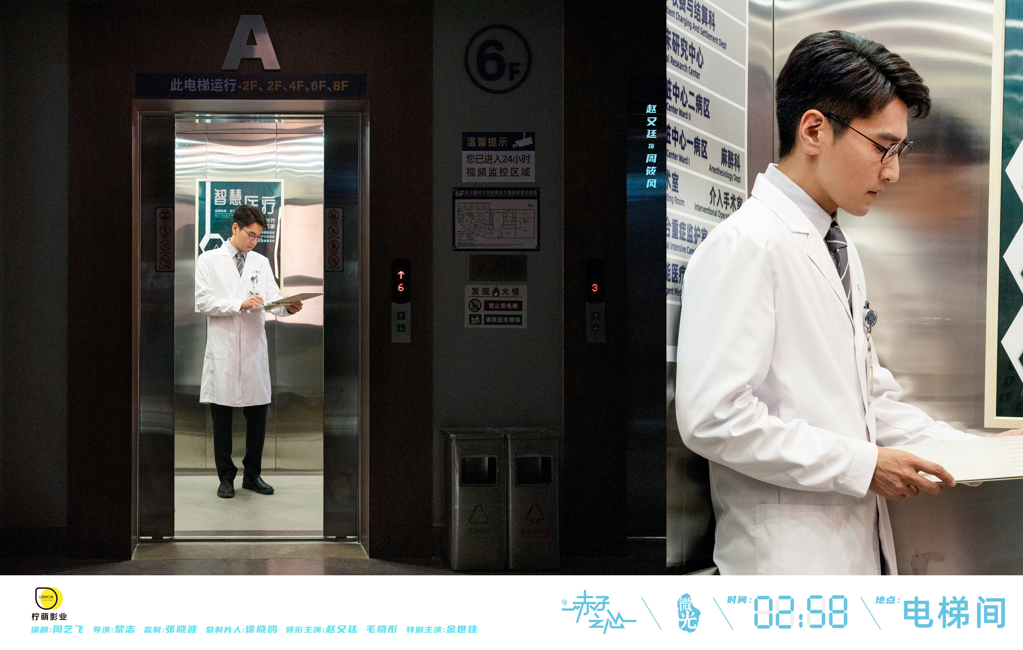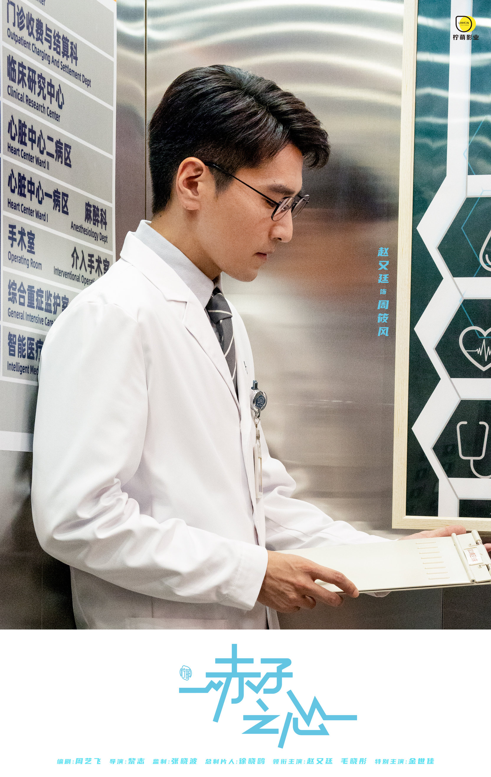《赤子之心》作为柠萌影业医疗题材系列开山之作,自开机起便备受关注。这也是赵又廷首次出演医生角色。今日发布的海报中,赵又廷身穿医生标志性的白大褂,戴着黑框眼镜,在深夜的医院电梯中专注地查看病历,在纪实风格中彰显该剧的暖愈故事感。