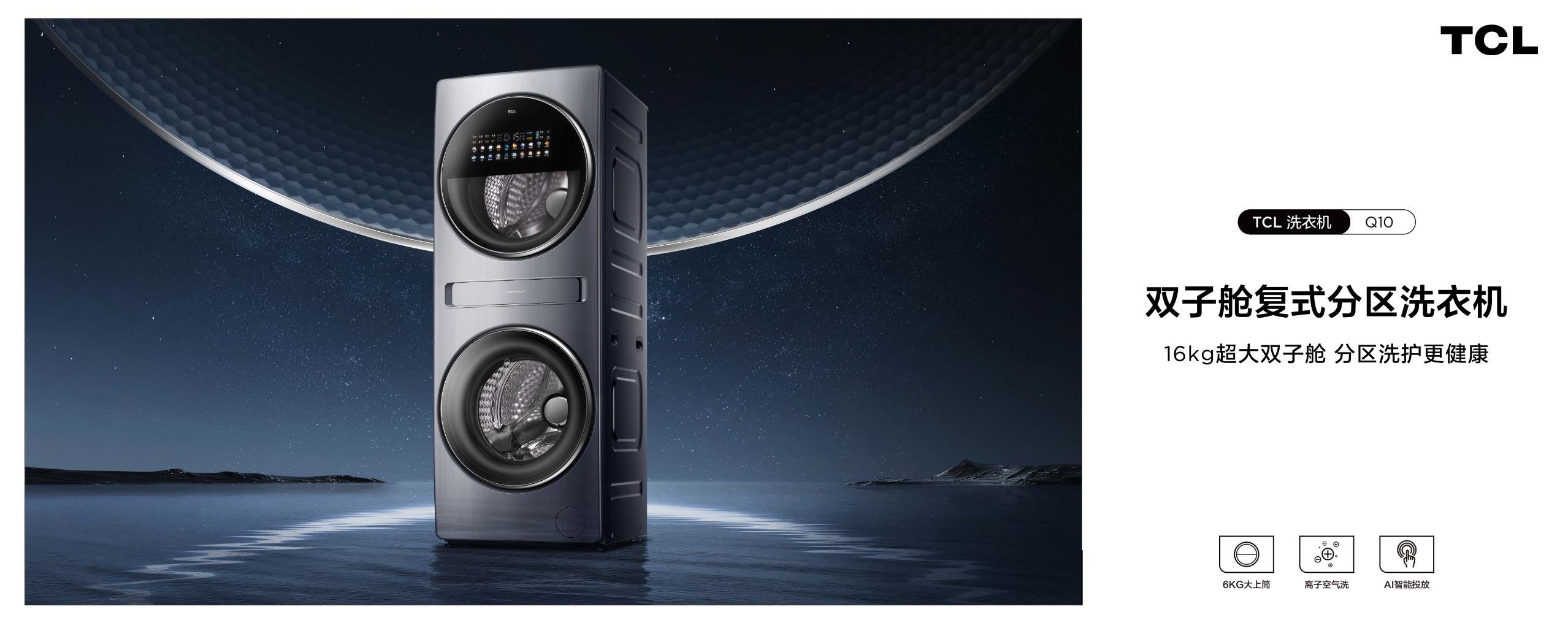 9月20日,2022年TCL洗衣机秋季新品发布会上,TCL推出了最新的双子舱复式分区洗衣机Q10,拥有6kg上筒+10kg下筒的超大洗涤容量,6kg的上筒还是行业最大上筒,同时具备离子空气洗、AI智能投放等功能,其配置和性能都达到了目前业界领先的水平。