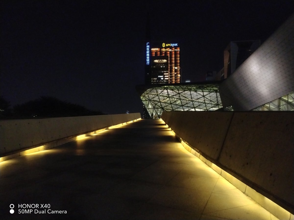 来到夜景,荣耀X40在普通拍照下的曝光控制不太好,时常会出现过曝或者过暗的情况,只有手动拉曝光度到一个适合的位置才能正常拍摄,而且最后成像噪点还是比较明显的。打开夜景模式后就变回正常水平,但是每次拍摄都要将手机固定 3-4 秒,比较影响拍摄体验,或许是因为系统优化问题,希望后续的系统升级可以调整一下。