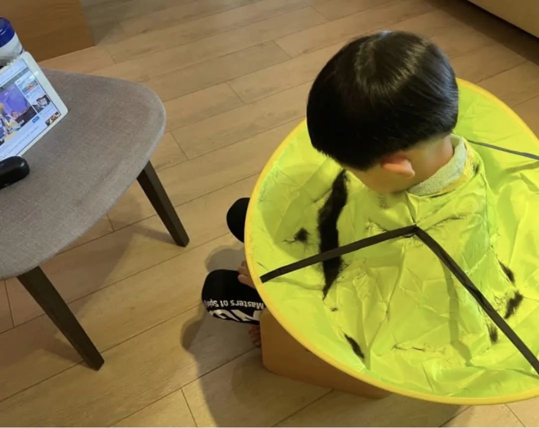 不工作的时候专心记录儿子成长,给儿子理发。