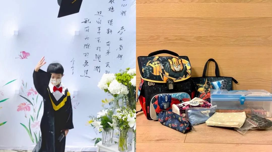 纪念儿子人生的第一场毕业和正式成为小学生。