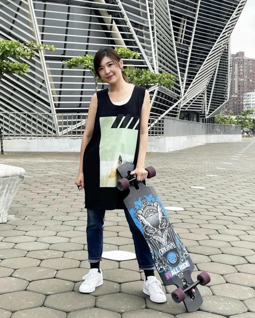 直到2014年,苏慧伦44岁才步入婚姻,老公孙益民是某滑板代理商,也曾是一名极限运动员。