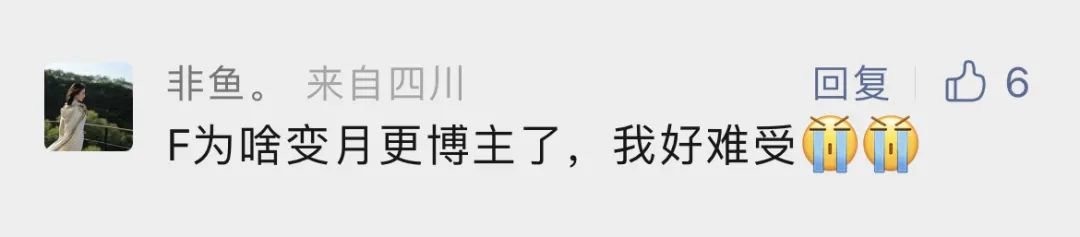 看到这条留言,F决定逼自己勤奋一点。