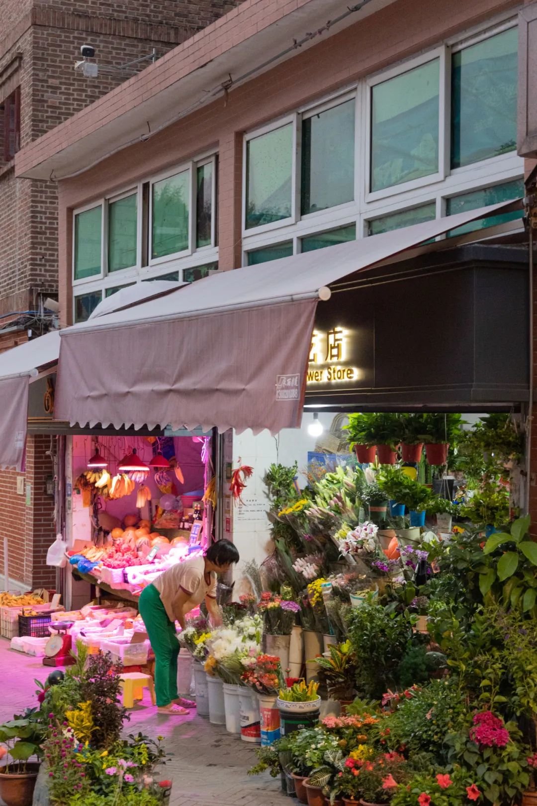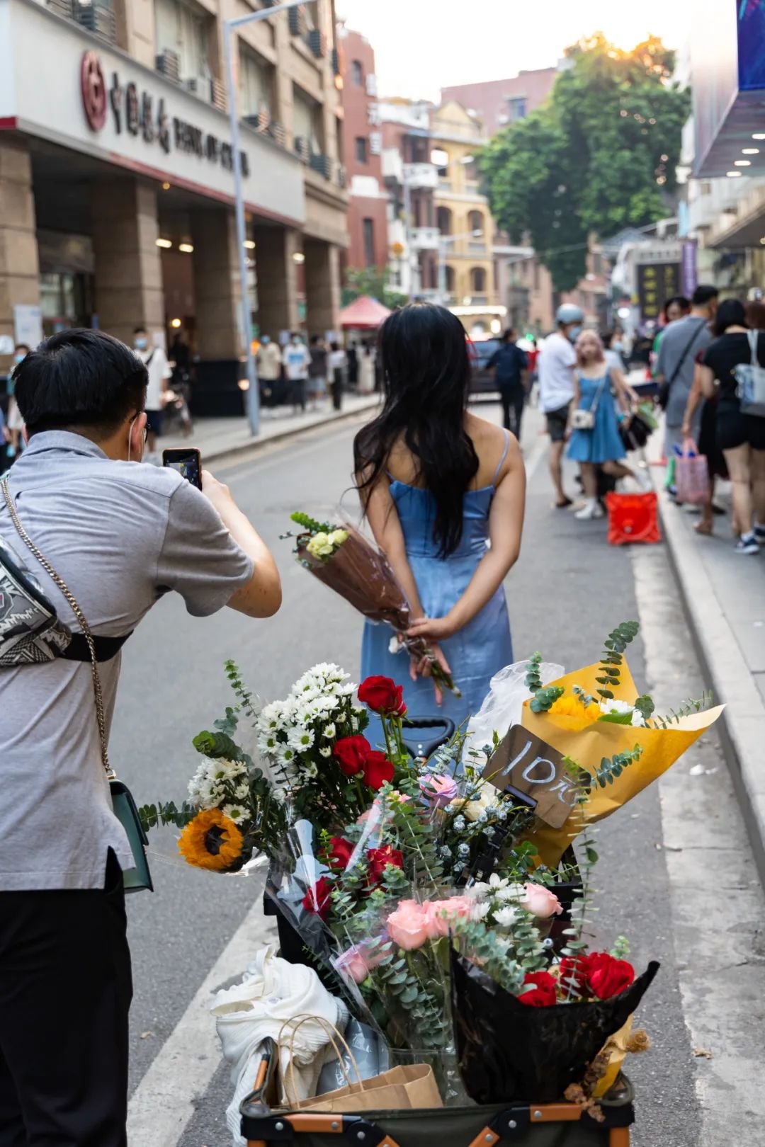 在街头买一束花,喝杯咖啡,来东山口不一定要消费很多,但也可以很开心。
