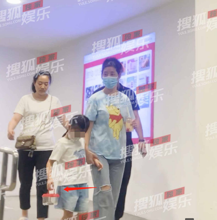醒醒自己拎着刚买的小宠物被保姆牵着走在最后,身边还跟着一男一女两个助理,看起来应该都是照顾孩子的工作人员。