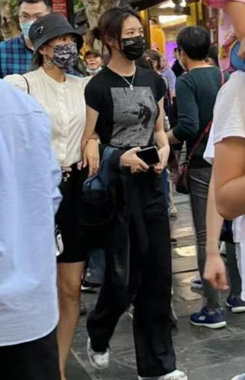 小苹果则是腰背笔直的走在了最前面,穿着简单的牛仔裤和T恤的她,看起来腰细腿长整个人身材比例就像是超模一般。