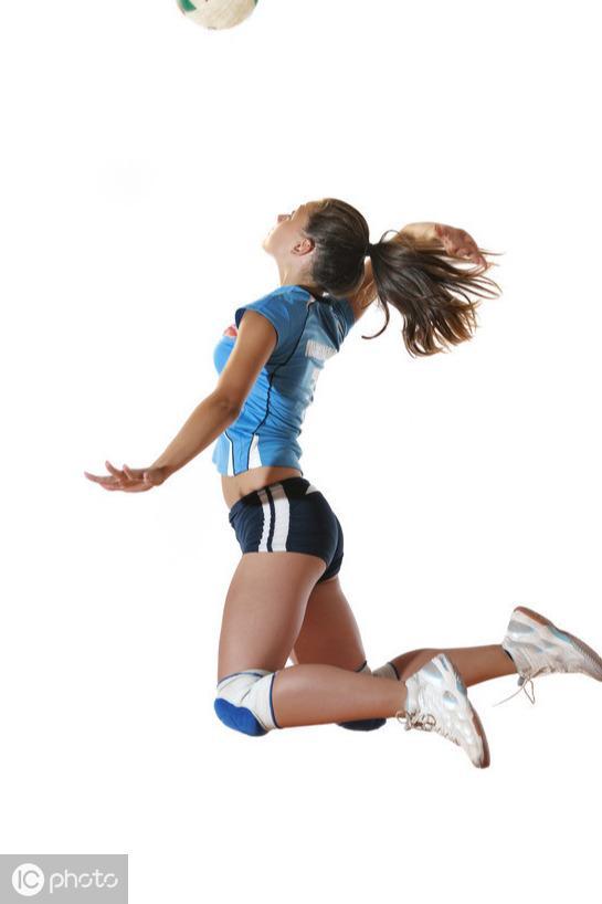 (3)在抛球的同时,右臂伸直,以肩关节为轴向后摆动。击球时,右腿蹬地,身体重心随着右手的向前摆动前移,在腹前用掌根击球的后下部。重心随击球动作前移,迅速进场比赛。