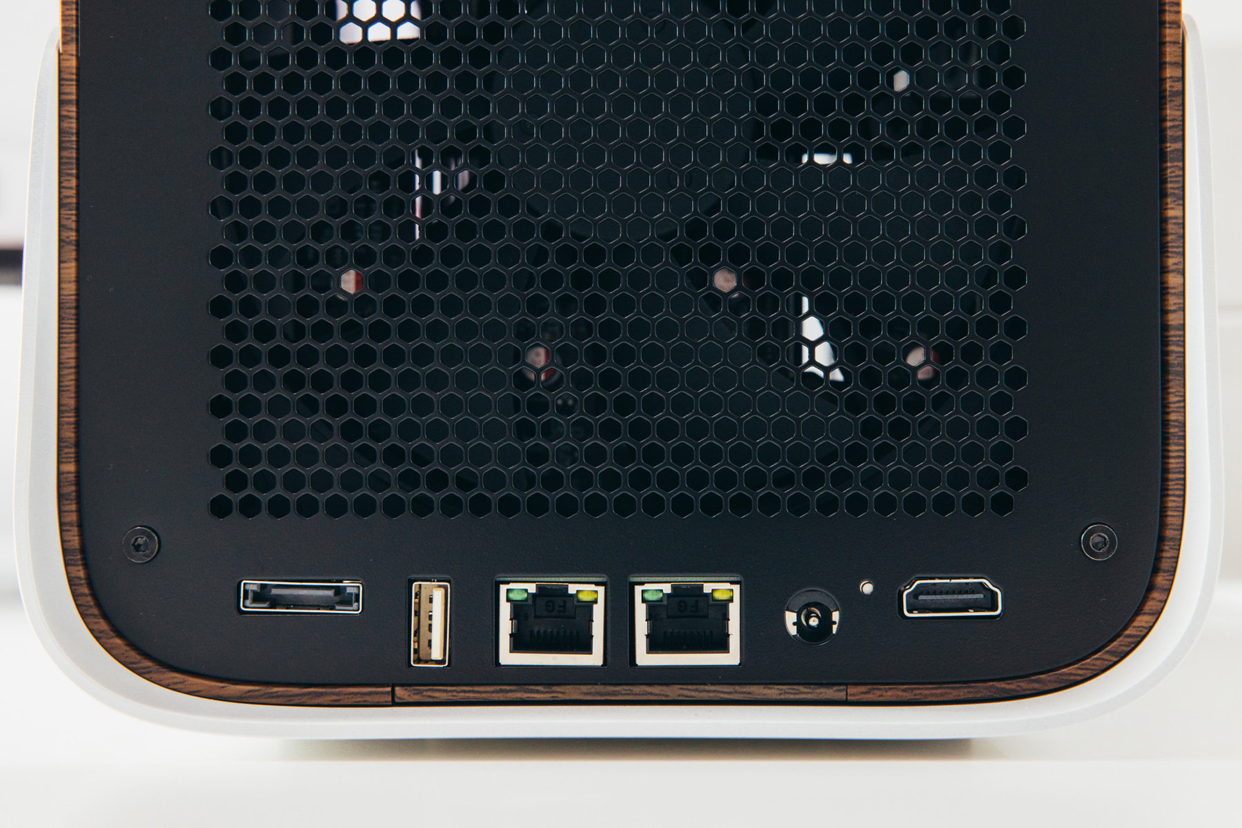底部接口倒是非常齐全,双2.5G网线接口,一个USB-A 2.0接口,可用于UPS通讯,一个eSATE接口,以及一个可以用于直接输出视频的HDMI2.0接口。